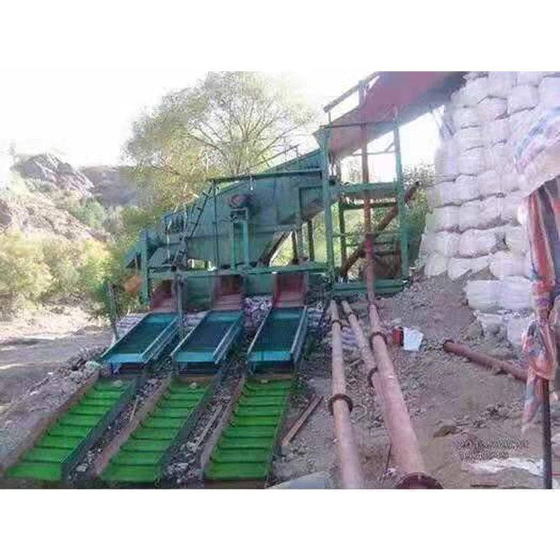 振动筛淘金设备的特点主要包括处理能力大、筛分效率高、振动器采用轴承稀油润滑、外置式块偏心结构、整体拆装方便、维护更换便捷、筛机侧板采用整板冷作、强度高使用寿命长、采用橡胶弹簧减振、电机与激振器联接采用挠性联轴器。